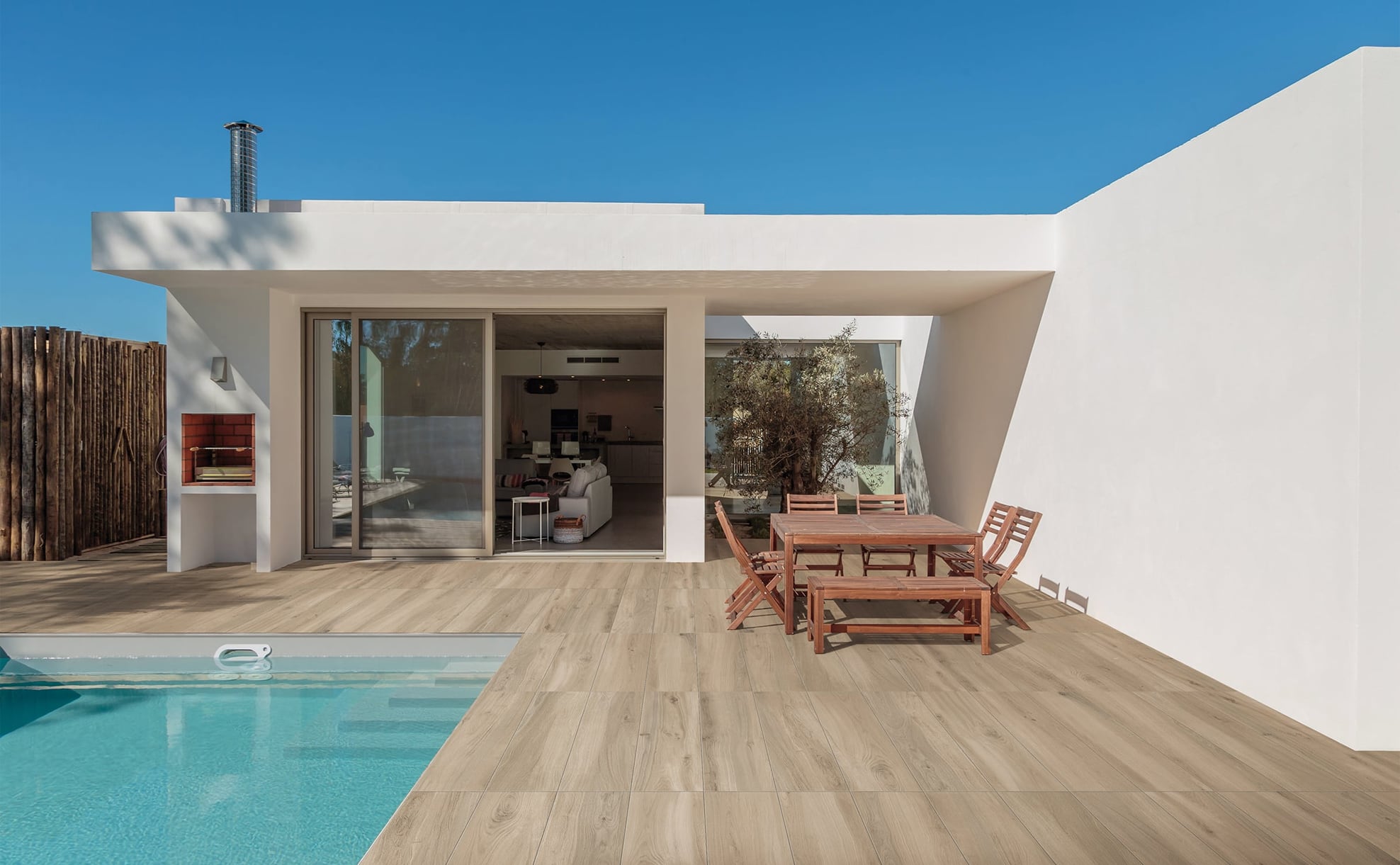 Mood Wood combines a sleek, matte porcelain tile finish with an array of five warm color compositions.