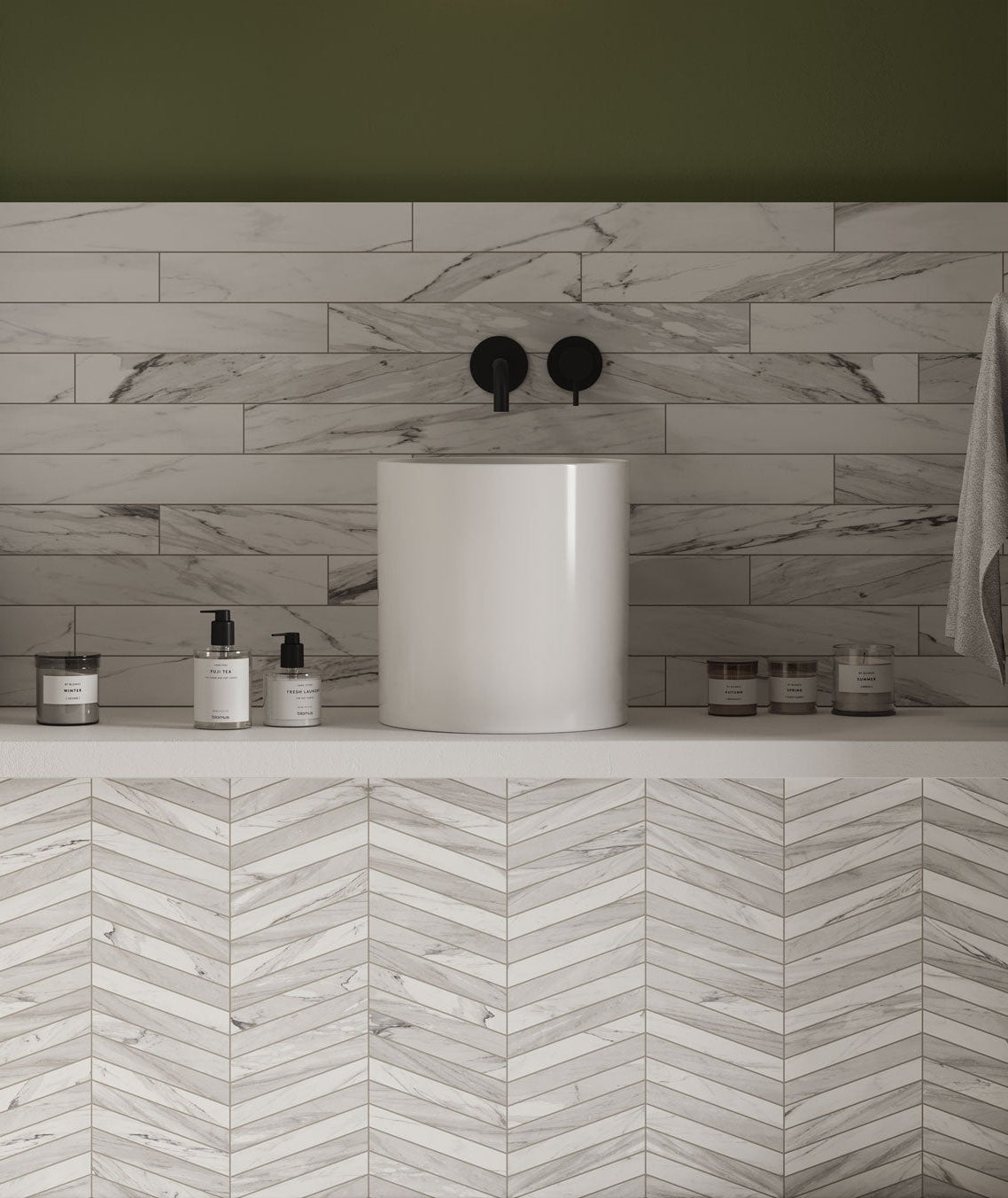 Shapes 4x24 Matte Porcelain Chevron Tile in Pine A+B